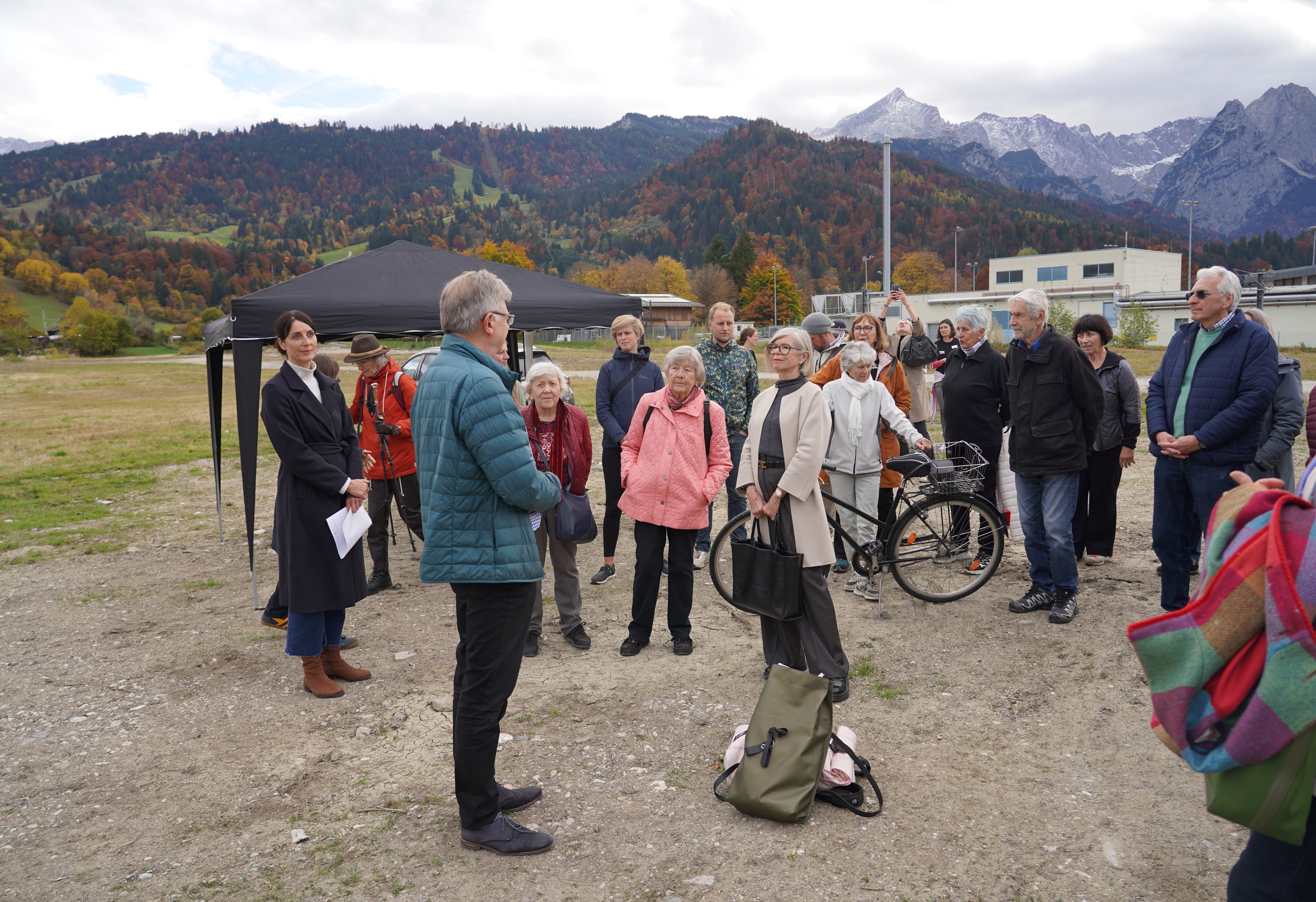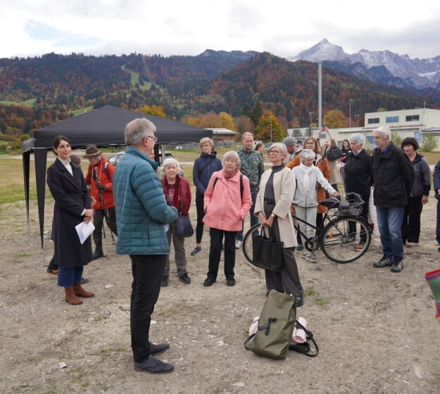 Garmisch-Partenkirchen, den 24.10.2025 - Auch der zweite Campus-Spaziergang in Garmisch-Partenkirchen stieß auf großes Interesse: Die maximale Teilnehmerzahl von 30 war per Voranmeldung schnell erreicht und so nutzten die Bürgerinnen und Bürger die Gelegenheit, sich vor Ort über den aktuellen Stand des Campus-Projekts zu informieren und mit den Verantwortlichen ins Gespräch zu kommen. Die Route führte - wie beim ersten Mal- zu vier Stationen: vom Baugelände über das TUM-Forschungszentrum und die Caritas Berufsfachschule für Pflege bis hin zum Wohncafé der Leifheit-Stiftung.